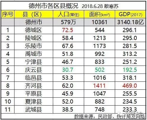 德州市各区县:齐河县面积第一,齐河县GDP第一