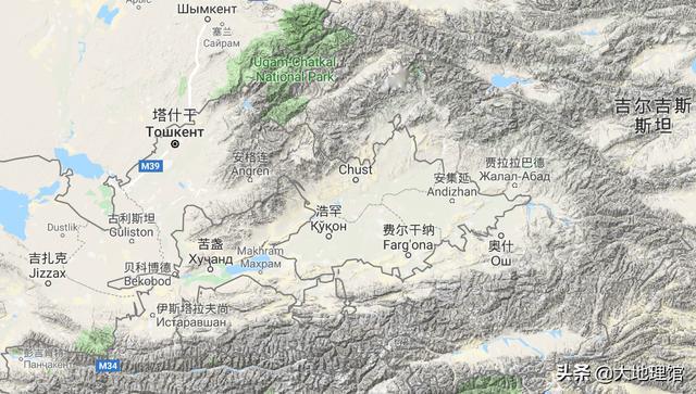 费尔干纳盆地,又称费尔干纳谷地,是天山和吉萨尔-阿赖山的山间盆地,位于乌兹别克斯坦、塔吉克斯坦和吉尔吉斯斯坦交界地区,东西长300公里,南北宽170公里。费尔干纳盆地内乌兹别克斯坦、塔吉克斯坦、吉尔吉斯斯坦三国的边境线犬牙交错,形成你中有我、我中有你的复杂局面。例如,位于盆地内的吉尔吉斯斯坦奥什州就有属于乌兹别克斯坦的4块小飞地和属于塔吉克斯坦的两块小飞地。