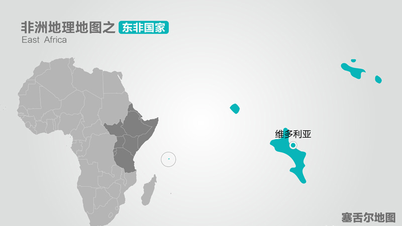 塞舌尔是位于非洲东部印度洋西侧的一个小群岛国家,图中圆圈所标处,由115个大小岛屿构成,西南方向是非洲第一大岛国马达加斯加,南与毛里求斯隔海相望,国土面积约455.8平方公里,人口约9.6万人,首都维多利亚。