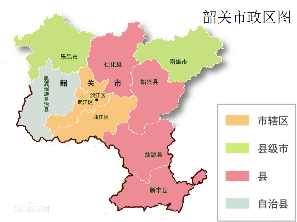 你要是韶关人的话,初看这张韶关市地图可能以为地图有误,因为现在的韶关市地图是这样的: