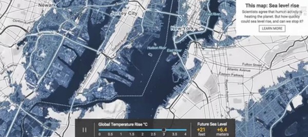 美国推交互式地图 解密全球变暖后海平面上升趋势